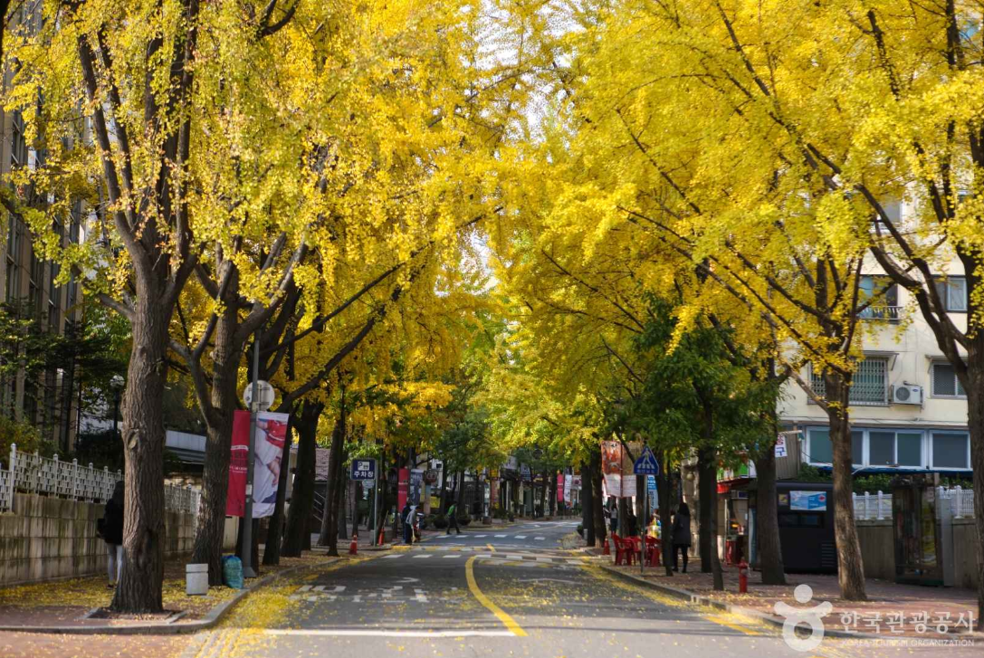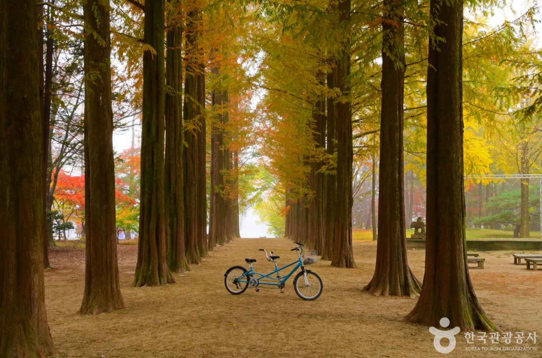 ソウル近郊で自然を満喫したいなら、南怡島(남이섬)へ足を延ばしてみましょう。ソウルから電車とフェリーで約1時間半。ドラマ『冬のソナタ』のロケ地として有名で、銀杏並木やカエデのトンネルが続きます。秋には島全体が黄金色に染まり、サイクリングやカフェめぐりも楽しむことができます。