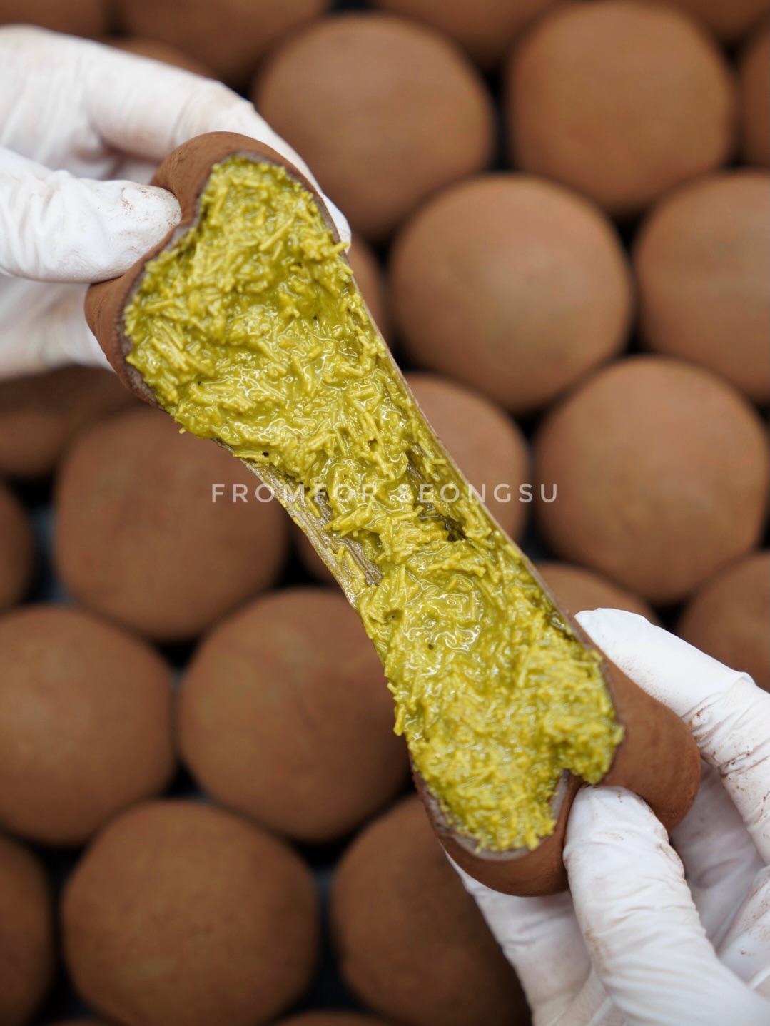 두바이 쫀득쿠키は、韓国で好まれる食感「もちもち×サクサク」のミックスを見事に実現しています。中にぎっしり詰まったピスタチオクリームとカダイフの食感、外の柔らかい生地の組み合わせは、従来のクッキーや菓子とは違い、新しい食体験として受け入れられています。