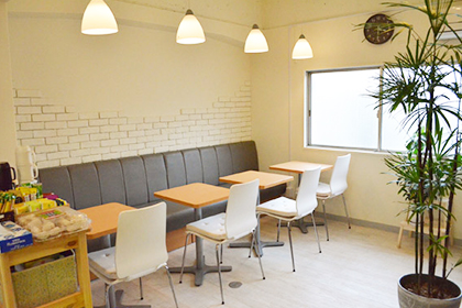当校にはカフェスペースがあり、フリードリンクも準備しています。こちらで授業時間前後に自習することができます。また、教室が空いている際は、教室を自習スペースとしてご利用いただけます。